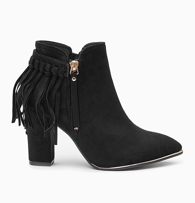 Jeanne - czarne botki BOHO Styl Zamsz - czarny