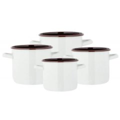 Komplet garnków prostych w kolorze kremowym wykonany został z wysokiej jakości stali nierdzewnej pokrytej emalią. Wewnętrzna powłoka jest bardzo szczelna i gładka dzięki czemu naczynia są bezpieczne dla zdrowia. Ze względu na wywijany ręcznie malowany, emaliowany brzeg (zamiast okuwki metalowej) naczynia mogą być stosowane przez alergików. W skład kompletu wchodzą:- garnek o średnicy 14 cm i pojemności 1,9 l- garnek o średnicy 16 cm i pojemności 2,9 l- garnek o średnicy 18 cm i pojemności 3,9 l- garnek o średnicy 20 cm i pojemności 4,8 l.