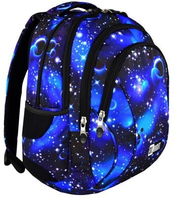 PLECAK MŁODZIEŻOWY COSMOS od ST.MAJEWSKI.St.Right to nowa marka od Firmy St.Majewski-produkty dla dzieci, młodzieży i dorosłych idealne do szkoły i na wycieczkę.Plecak ma bogate, uporządkowane wnętrze - system SOW (System Organizacji Wnętrza).Jest pojemny, estetycznie wykonany, ładny i posiada modny wzór model 2018 - z pewnością przypadnie do gustu jego użytkownikowi.Plecak posiada 2 główne komory zapinane na suwak, dwie mniejsze kieszonki zapinane na suwak.W największej komorze jest kieszonka na sprzęt grający lub telefon komórkowy oraz wyjście na słuchawki a także miejsce na laptopa.W kieszeniach mamy miejsce na ładowarkę do laptopa oraz organizer, który ułatwi utrzymanie porządku wewnątrz plecaka.Z boku plecaka są 2 siateczkowe kieszonki.Plecy są profilowane i usztywniane.Szelki są regulowane, grube i miękkie.Na szelkach zamocowano pas mostkowy.Metalowe suwaki zakończone zostały profilowanymi uchwytami.!!! DO KAŻDEGO PLECAKA Z MODELU 2018 CHUSTA WIELOFUNKCYJNA GRATIS !!! ZAWARTOŚĆ:- 2 główne komory zapinane na suwak z wyjściem na słuchawki, miejscem na laptopa, komórkę bądź inny sprzęt grający,- 2 mniejsze kieszenie zapinane na suwak z organizerem i kieszenią na ładowarkę,- 2 siateczkowe kieszonki na bidon,- solidny i wygodny uchwyt,- profilowane uchwyty do suwaków- profilowane ergonomiczne plecy,- regulowane, miękkie szelki,- pas mostkowy,- wzmocnione dno,- wytrzymały i wodoodporny materiał,- metalowe suwaki, profilowane uchwyty,- modny wzór model 2018,- gratis chusta wielofunkcyjna. WYMIARY:plecaka pustego ok.36 x 44 x 6 cm WAGA:935 g WIEK:10 lat+ UWAGI:Nieodpowiednie dla dzieci poniżej 3 lat.