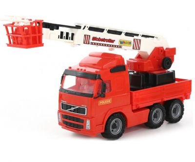 Pojazd posiada podnoszone, wysuwane i obrotowe ramie z drabiną z ruchomym koszem na końcu. Drabina wysuwa się aż do 80 cm! Podnoszenie i wysuwanie drabiny odbywa się za pomocą wygodnych pokręteł. Platforma z drabiną może obracać się o 360°. Burty wozu są otwierane.