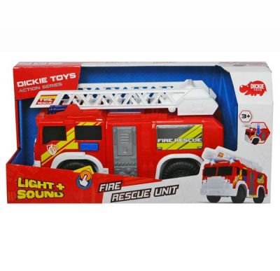 Wóz strażacki Dickie.Realistycznie wykonany wóz strażacki.Efekty świetlne i dźwiękowe uruchamiane za pomocą przyciskuObrotowa, podnoszona i wyciągana drabina.Wolne kołoWymiary opakowania: 39,5 x 14 x 19,5 cm.Wymiary: 30 x 12 x 17,5 cm.Od 3 roku życia.Baterie: 2 x 1,5V R6 (AA), dołączone do zestawu. Waga: 1 kg.EAN: 4006333049873.