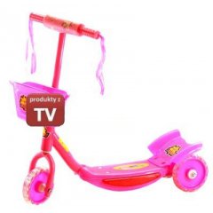 Dziecięca Hulajnoga trójkołowa gra i świeciDZIECIĘCA HULAJNOGA TRÓJKOŁOWAHulajnoga została wykonana z wytrzymałych metalowych rurek, duży rozstaw tylnych kół oraz szeroki podest zapewni bezpieczną naukę jazdy.Duże koła wykonane z miękkiego tworzywa umożliwiają cichą i wygodną jazdę.Z przodu hulajnogi znajduje się koszyk do którego można schować zabawki czy też butelkę z napojem.Hulajnoga wyposażona jest w hamulec nożny aktywowany naciśnięciem stopy.Cechy produktu: Długość: 58cm Regulowana kierownica w zakresie: 55 cm - 65 cm Do hulajnogi dołączony jest koszyk na zabawki itp....