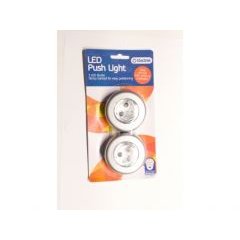 Lampka 3LED dotykowa komplet 2 sztukiKomplet dwóch lampek 3 LED włączana po przez naciśnięcie. Dzięki mocnemu światłu i braku przewodów lampka jest idealnym źródłem światła do wykorzystania praktycznie w każdym miejscu, np. w piwnicy, kuchni, spiżarni, szafie, namiocie, itp. Lampka wyposażona jest w taśmę samoprzylepną, co powoduje szybki i łatwy montaż Zasilana trzema bateriami typu AAA R3 (brak w zestawie). Średnica 7cm. Całość nowa zapakowana w blister.