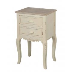 Prowansalska szafka nocna RiminiPiękna i szalenie romantyczna szafka nocna z kolekcji mebli prowansalskich Rimini. Ma gięte, bogato zdobione nóżki, dwie szuflady i ciemniejszy od podstawy blat. Szafka doskonale wpasuje się w klimat stylowych wnętrz, można ją również wykorzystać we wnętrzach bardziej surowych jako przełamanie konwencji.
