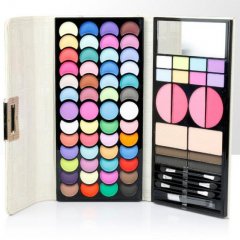 ROOF - Paleta 70 perłowych cieni do powiekPaleta 52 perłowych cieni do powiek WYSOKIEJ JAKOŚCI 18 dodatkowych elementów (róże, podkłady, korektory) 3 dwustronne aplikatory pędzelek lusterko eleganckie etui Średniej wielkości paleta cieni składająca się z 70 elementów,