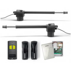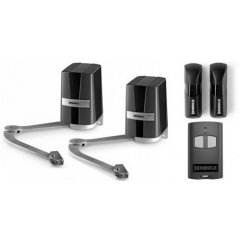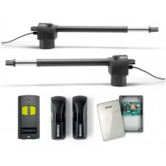 Zestaw do bram skrzydłowych BENINCA KBOB3024E.PMNowatorski zespół przekładni FACE. Wszystkie części mechaniczne wykonane z wysokiej jakości stali. Przekładnia i gwint wewnętrzny wykonane z brązu. Odblokowanie przy pomocy osobistego klucza. Nienawrotny siłownik elektromechaniczny na napięcie 24Vdc do użytku intensywnego, wyposażony w enkoder. Enkoder gwarantuje precyzję pracy i maksimum bezpieczeństwa użytkownika. Zestaw zawiera: siłownik BOB3024E do bram skrzydłowych o ciężarze 200kg, silnik 24Vdc z enkoderem 2szt centrala sterująca z odbiornikiem radiowym BRAINY24 pilot dwukanałowy 433,92MHz TO.GO2VA fotokomórki PUPILLA Specyfikacja: siłownik elektromechaniczny 24Vdc ślimacznica walcowana o przekroju ?20mm maksymalna długość skrzydła 3m amperometryczny system wykrywania przeszkody zabezpiecza przed zgnieceniem możliwość zasilania akumulatorowego zasilanie centrali ? 230 Vac zasilanie silnika ? 24 Vdc 120W + 120W wbudowany wyświetlacz LCD wbudowany odbiornik radiowy 433,92 MHz. Możliwość wgrania 64 kodów stałych, zmiennych lub ARC kostki zaciskowe łatwe w użyciu (wyjmowane) wejścia na wyłączniki krańcowe ? osobne dla każdego siłownika wejścia: otwórz, zamknij i funkcja furtki (częściowe otwarcie bramy) wejście na fotokomórki otwórz ? zamknij i otwórz wejście krawędzi bezpieczeństwa 8K2 wyjście 12Vdc na zamek elektryczny wyjście na oświetlenie serwisowe, wskaźnik położenia bramy, drugi kanał radiowy i test fotokomórek funkcja autouczenia elektroniczna regulacja parametrów poszczególnych siłowników ochrona przed zgnieceniem dzięki zastosowaniu czujnika amperometrycznego i podłączenia enkodera regulacja zwalniania w fazie zamykania i otwierania, niezależnie dla każdego siłownika konfiguracja funkcji i zarządzanie pilotami za pomocą urządzenia ADVANTOUCH możliwość sprawdzenia aktualnej ilości cykli hasło dostępu do programowania centrali