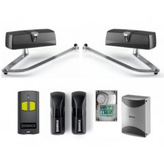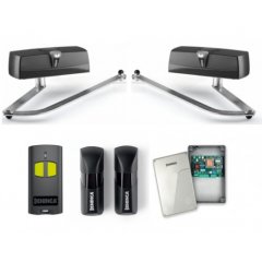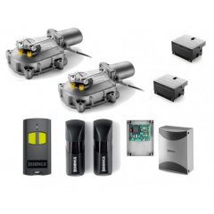 Zestaw do bram skrzydłowych BENINCA KBOB50M.PMNowatorski zespół przekładni FACE. Wszystkie części mechaniczne wykonane z wysokiej jakości stali. Przekładnia i gwint wewnętrzny wykonane z brązu. Odblokowanie przy pomocy osobistego klucza. Niezawodny, cichy, łatwy i szybki do instalacji siłownik mechaniczny. Wyposażony w dwa mechaniczne wyłączniki krańcowe regulowane w fazie otwierania i zamykania. Ślimacznica walcowana o przekroju ?20mm. Zestaw zawiera: siłownik BOB50M do bram skrzydłowych o ciężarze 350kg, silnik 230Vac 2szt centrala sterująca z odbiornikiem radiowym HEADY pilot dwukanałowy 433,92MHz TO.GO2VA fotokomórki PUPILLA Specyfikacja: siłownik elektromechaniczny 230Vac ślimacznica walcowana o przekroju ?20mm maksymalna długość skrzydła 5m zasilanie centrali ? 230 Vac zasilanie silnika ? 230 Vac 500W + 500W wbudowany wyświetlacz LCD wbudowany odbiornik radiowy 433,92 MHz możliwość wgrania 64 kodów stałych, zmiennych lub ARC kostki zaciskowe łatwe w użyciu (wyjmowane) wejście funkcji furtki (częściowe otwarcie jednego skrzydła bramy) programowane wejście na fotokomórki wyjście 230Vac i 12Vac/dc na zamek elektryczny wyjście na oświetlenie serwisowe, wskaźnik położenia bramy, drugi kanał radiowy i test fotokomórek elektroniczna regulacja parametrów poszczególnych siłowników wraz z czasem pracy stała prędkość siłowników (brak możliwości regulacji) konfiguracja funkcji i zarządzanie pilotami za pomocą urządzenia ADVANTOUCH możliwość sprawdzenia aktualnej ilości cykli hasło dostępu do programowania centrali możliwość ustawienia przypomnienia o przeglądzie serwisowym posiada możliwość podłączenia jednej linii fotokomórek