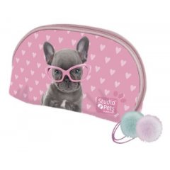 Bardzo ozdobny, wielofunkcyjny piórnik Studio Pets. Wyposażony w jedną pojemną komorę zamykaną na zamek błyskawiczny z ozdobnymi pomponami. Praktyczny w fantastycznie dobranej kolorystyce doskonały dla użytkowników w każdym wieku. Wykonany został z materiału odpornego na codzienne użytkowanie. Kształt i rozmiar piórnika pozwolą na wykorzystanie go również jako kosmetyczkę czy saszetkę.