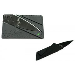 Nóż karta kredytowa składany CARDSHARPNóż karta kredytowaskładany CARDSHARP Karta, która po rozłożeniu zmienia się w nóż z ostrym ostrzem o długości 6,5 cm.Doskonały podczas wypraw, obozów, pikników.Przydatny w samochodzie.Dzięki niewielkim rozmiarom bez trudu zmieścisz go w portfelu.Zawsze możesz mieć go przy sobie.Posiada blokadę, która uniemożliwia otwarcie się noża w portfelu czy kieszeni. Ostrze wykonane ze stali nierdzewnej, pokryte czarna powłoką ceramicznąWygodna rękojeść.Świetny gadżet imitujący prawdziwą kartę kredytowąŁatwy w złożeniuWymiary:Karty8,6cm x 5cmDługość całego noża:13,5cmMateriał:stal nierdzewna+polipropylenProdukt fabrycznie nowy, zapakowany w oryginalne opakowanie.