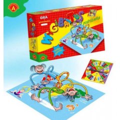 ALEXANDER Gra Wygibajtus PodróznikaWygibajtus Podróżnika - gra, w której każdy z graczy gra całym ciałem. W zależności od wskazań na tarczy, gracze muszą postawić swoje stopy i dłonie w odpowiednich miejscach na planszy. Zmusza to często grających do akrobatycznych ewolucji. Gracz, który nie może zająć na planszy wskazanego miejsca na planszy odpada. Wygrywa ten, kto szczęśliwie losowała i był najbardziej wygimnastykowany. Gra wygibajtus podróżnika jest doskonałą rozrywką dla dzieci od 6 lat i dorosłych, zapewnia wiele emocji i dobrej gimnastyki. Przy okazji młodsi gracze poznają położenie kontynentów patrząc na mapę, którą przedstawia plansza.Gra Wygibajtus podróżnika jest dla 2-6 osóbCzas gry 30min.