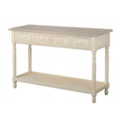 Konsola z półką RiminiProwansalska konsola Rimini to efektowny mebel dający wiele możliwości aranżacji. W salonie można postawić ją za sofą i ustawić na niej lampki nocne i książki. Ustawiona w przedpokoju może tworzyć wspaniałą kompozycję z zawieszonym nad nią lustrem i ułożonymi na dolnej półce wiklinowymi koszami. To jakie zastosowanie konsola Rimini znjadzie w Twoim domu, zależy tylko i wyłącznie od Twojej fantazji. Mebel stylizowany i postarzany.
