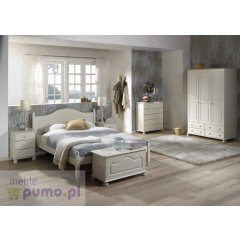 Sypialnia Richmond należy do kolekcji mebli skandynawskich produkowanych przez uznaną w europie duńską markę STEENS. Romantyczny zestaw Richmond to nie tylko dbałość o wykończenia i detale, ale również:wysoka jakość zachowanie norm ekologicznychwszystkie produkty wykonane są z naturalnych materiałów płyta ?MDF- Wybarwienie: białeElementy zestawu:Łóżko - ze stelażem, bez materaca, powierzchnia spania 135 cm x 190 cm - rozmiar "angielski"wysokość: 94 cmszerokość: 143 cmgłębokość: 201 cmSzafa - 3 drzwiowa, 4 szuflady wysokość: 185 cm szerokość: 130 cm głębokość: 57 cmKomoda - 2 małe szuflady, 4 duże szuflady wysokość: 90 cm szerokość: 82 cm głębokość: 38 cmStolik nocny - 2 szt., 3 szuflady wysokość: 58 cm szerokość: 44 cm głębokość: 38 cm Meble do samodzielnego montażu. Meble sprzedajemy w zestawach2 lata gwarancji  Sypialnia to najważniejsze pomieszczenie w każdym domu, powinna być przytulna i funkcjonalna. Romantyczna seria białych mebli Richmond właśnie taka jest, zapewni użytkownikowi komfort i spokój, który jest potrzebny do odpoczynku. Szczególnie ważnym elementem w sypialni jest łóżko i dobry materac, gdyż komfort snu zależy przede wszystkim od wygodnego legowiska.Stąd też w naszej ofercie istnieje mozliwość zakupu doskonałych materacy marki Sembella:Do łoża sypialnianego polecamy jeden z materacy o wymiarach 155 x 198 cm.Opisy poszczególnych materacy znajdują się w dziale z ofertą materacy.
