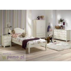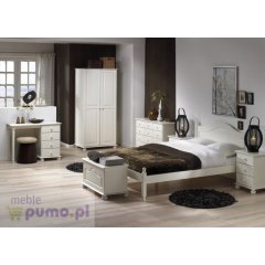 Białe meble do sypialni - romantyczny zestaw - nowość na www.meblepumo.plSypialnia Richmond należy do kolekcji mebli skandynawskich produkowanych przez uznaną w europie duńską markę STEENS. Romantyczny zestaw Richmond to nie tylko dbałość o wykończenia i detale, ale również:wysoka jakość zachowanie norm ekologicznychwszystkie produkty wykonane są z naturalnych materiałów płyta ?MDF- Wybarwienie: białeElementy zestawu Richmond II:Łóżko - ze stelażem, bez materaca, powierzchnia spania 135 cm x 190 cm - rozmiar "angielski"wysokość: 94 cmszerokość: 143 cmgłębokość: 201 cmSzafa - 3 drzwiowa, 4 szuflady wysokość: 185 cm szerokość: 130 cm głębokość: 57 cmStolik nocny - 2 szt., 3 szuflady wysokość: 58 cm szerokość: 44 cm głębokość: 38 cm Meble do samodzielnego montażu. Meble sprzedajemy w zestawach2 lata gwarancji Sypialnia to najważniejsze pomieszczenie w każdym domu, powinna być przytulna i funkcjonalna. Romantyczna seria białych mebli Richmond właśnie taka jest, zapewni użytkownikowi komfort i spokój, który jest potrzebny do odpoczynku. Szczególnie ważnym elementem w sypialni jest łóżko i dobry materac, gdyż komfort snu zależy przede wszystkim od wygodnego legowiska.Stąd też w naszej ofercie istnieje możliwość zakupu doskonałych materacy marki Sembella:Opisy poszczególnych materacy znajdują się w dziale z ofertą materacy.Zapraszamy do obejrzenia pozostałej oferty mebli do sypialni