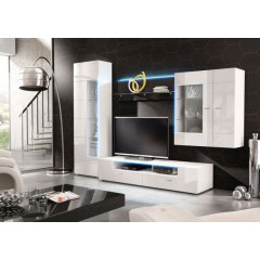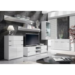 Dane szczegółowe Opis produktuKod produktu13494Materiałpłyta MDFKolorfronty: biały, wysoki połyskkorpus: czarnyWymiaryWitryna wisząca:szerokość: 60 cmwysokość: 119 cmgłębokość: 35 cmKomoda 2+2szerokość: 79 cmwysokość: 99 cmgłębokość: 35 cmSzafka RTV:szerokość: 170 cmwysokość: 46 cmgłębokość: 42 cmPółka:szerokość: 170 cmwysokość: 20 cmgłębokość: 24 cmKomoda 3+3szerokość: 149 cmwysokość: 86 cmgłębokość: 42 cmStan produktudo samodzielnego montażuCechy charakterystyczne :wygodny i przestronny zestawduża pojemnośćwysoka jakość wykonaniaidealne dopełnienie salonuWyposażenie:półka x2szafka RTVwitrynakomoda 3+3komoda 2+2oświetlenie LEDSposób czyszczenia :wilgotna szmatka nasączona czystą letnią wodąMontaż :mebel do samodzielnego montażukażdy mebel posiada instrukcję montażuprosimy skręcać meble według ustalonych zasad Elegancka meblościanka dla wielbicieli nowoczesnego stylu ROSSO 2 zestaw do salonu 2 to doskonale skomponowany zestaw mebli, tworzących estetyczną oraz praktyczną całość, idealny do urządzenia salonu lub pokoju wypoczynkowego. Uda się dzięki temu uzyskać rewelacyjne efekty wizualne, gdyż meblościanka sama w sobie jest bardzo elegancka, efektowna, ma wielkie walory dekoracyjne. Zachwyca prostotą, to projekt stonowany, minimalistyczny wręcz ? dlatego znakomicie będzie pasowała do nowoczesnych mieszkań. W skład meblościanki wchodzi m.in. praktyczna szafka RTV witryna oraz komoda ? tak więc ten zestaw mebli daje wspaniałe możliwości urządzenia pomieszczenia praktycznie i gustownie, znajdzie się tutaj miejsce dla wielu potrzebnych w każdym domu rzeczy.