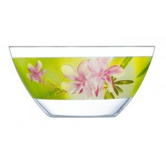 Salaterka FreesiaZastawa obiadowa Freesia to atrakcyjna dekoracja z motywem kwiatowym, nasycona odcieniami zieleni, to prawdziwa wiosna na talerzu. Forma naczyń to zmieniony kształt kwadratu, złagodzone i zaokrąglone kąty. Zastawa obiadowa Freesia wykonana jest ze szkła hartowanego, tzn. naprzemiennie ogrzewanego i chłodzonego strumieniem powietrza w celu zagwarantowania lepszej jakości i wytrzymałości na wstrząsy i uderzenia.Talerze i salaterki z linii Freesia są odporne na szoki termiczne czyli produkty te mogą być bezpośrednio wyjmowane z zamrażarki i wkładane do kuchenki mikrofalowej - różnica temperatur do 135 C. Szkło jest materiałem nieporowatym, dlatego nie zatrzymuje żadnych mikroorganizmów, jest 100% higieniczne.