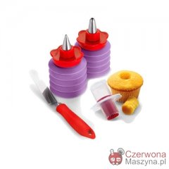 Zestaw do dekoracji ciast WYSYŁKA NATYCHMIAST! JEST W MAGAZYNIE. Przepiękna dekoracja ciasta w zasięgu dłoni! Zestaw akcesoriów do zdobienia ciast pomoże stworzyć bajeczne kształty i wzorki na powierzchni ciast ? nawet bez wielkich umiejętności cukierniczych. Płaską szpatułką idealnie rozprowadzisz kremy i masy na cieście, dekoratorami dodasz pomysłowe motywy a specjalnym wykrawaczem wydrążysz w babeczkach idealne otworki. Mniam!Akcesoria Cuisipro. ? stworzone dla wygody i radości gotowania! W skład zestawu wchodzą: szpatułka do rozprowadzania na powierzchniach kremudekoratorywykrawacz do wydrążania środków babeczek