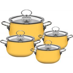 Komplet Selena 16,18,20,22 cm z pokrywkami szklanymiKomplet naczyń Selena w kolorze morelowym - 8 elementowy. Garnki są wykonane z najwyższej jakości stali, pokrytej emalią ceramiczną z uchwytami ze stali nierdzewnej. Każdy garnek posiada idealnie dobraną pokrywę szklaną z odpowietrznikiem, dzięki któremu potrawy będą się dużo szybciej gotowały a Twoja kuchnia nie będzie zaparowana. Komplet ten jest idealnym połączeniem nowoczesnego designu.Przepiękne kolory kolekcji Selena w połączeniu z eleganckim baryłkowatym kształtem, będą się idealnie prezentowały w Twojej kuchni. Naczynia z linii Premium obok niekwestionowanych walorów estetycznych są wyjątkowo starannie wykonane.Wewnętrzna powłoka naczyń jest bardzo szczelna i gładka - co wpływa na smak potraw i bezpieczeństwo użytkowania tych naczyń - są one bezpieczne dla zdrowia. Zastosowana emalia jest odporna na promienie UV dzięki czemu naczynia bardzo długo będą wyglądały idealnie.Garnki z kompletu Selena są niezwykle łatwe w czyszczeniu, możesz zmywać je ręcznie jak i w zmywarkach. Są przystosowane do wszystkich rodzajów kuchenek w tym indukcyjnych. Możesz je również użytkować w piekarniku jednak z ograniczeniem temperatury dla pokrywy szklanej do 180 °C.Ze względu na stalowe okucie naczyń, po umyciu naczyń zaleca się ich suszenie w pozycji pionowej - nie odwracaj naczyń do góry dnem - będą zdecydowanie dłużej służyły.Do kompletu możesz również dokupić idealnie pasujący czajnik, rondel bądź patelnię. Gotowanie w naczyniach Selena to czysta przyjemność.Skład kompletu:? Garnek z pokrywą szklaną 16 cm (1,4l),? Garnek z pokrywą szklaną 18 cm (2,1l),? Garnek z pokrywą szklaną 20 cm (3,0l),? Garnek z pokrywą szklaną 22 cm (4,0l).