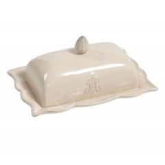 Maselnica Belldeco NiceaStylowa zastawa stołowa Maselnica to ceramiczne naczynie w pięknym, beżowym kolorze, które doskonale uzupełni wykwintną zastawę stołową lub też będzie niebanalną dekoracją stylowej kuchni albo jadalni. Naczynie z kolekcji Nicea Belldeco wyróżnia się wykwintnością i elegancją, którą akcentuje charakterystyczny relief przypominający herby królewskie oraz efekt postarzania, jakim wykończono krawędzie. Maselnica składa się z podstawki o fantazyjnie ukształtowanej krawędzi z dekoracyjnym karbowanym obrzeżem oraz czworokątnej pokrywki z reliefem i niewielkim uchwytem. To naczynie dla koneserów piękna sprzed wieku.