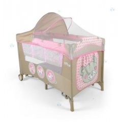 Kojec, łóżeczko turystyczne firmy MILLY MALLY, Mirage Delux 2014, fullwypas.Łóżeczka turystyczne wykonane zostały z najwyższej jakości tworzywa co zapewnia ich wysoką trwałość.Dno łóżeczka oparte jest na stabilnej krzyżakowej konstrukcji.Łóżeczko jest dwupoziomowe, posiada 2 boki wykonane z przezroczystej siatki, usztywniany materac zapewniający komfort dziecku.Łóżeczko z serii Mirage Delux 2014 to komfort zarówno dziecka jak i rodzica - dwa poziomy pozwolą na dłuższe użytkowanie łóżeczka/kojca, ułatwią przewijanie malucha, a siateczkowe, przezroczyste boki pozwolą na obserwację dziecka.Natomiast składana konstrukcja umożliwia wygodny transport.Doskonale nadają się do podróży z dzieckiem, ale również jako zwykłe łóżeczko w domu i w ogrodzieZAWARTOŚĆ: KOJEC POSIADA:- nowoczesną linię wzorniczą,- dwustopniowy poziom regulacji wysokości materaca,- przewijak,- pałąk z 5 zabaweczkami- łatwy mechanizm składania i rozkładania,- solidne podparcie spodu,- mocny stelaż,- kolorowy materacyk 120 x 60 (z grafiką jak boki), mocowany na rzepach,- kółka wyposażone w hamulce - płozy do bujania- głębokość od krawędzi do materaca 60 cm,- otwierany bok łóżeczka,- moskitiera z daszkiem,- torbę do transportu z otworami na kółka.- moduł świecąco-grająco-wibrujący 3 in 1WIEK:Od urodzenia do 3 latWYMIARY:Waga kojca : około 13 kgWymiary wewnętrzne rozłożonego łóżka: 120x60x80cmWymiary złożonego łóżka :20x20x80cmZASILANIE:moduł świecąco-grająco-wibrujący - na 3 baterie AA-paluszkiOSTRZEŻENIE! Bądź świadom ryzyka, jakie stanowi otwarty ogień oraz inne silne źródła ciepła, takie jak promienniki elektryczne lub gazowe itp. umieszczone w pobliżu kojca/łóżeczka . Nie używać kojca, jeżeli jakikolwiek jego element jest uszkodzony, rozdarty lub brakuje elementu, używać tylko elementów dopuszczonych przez producenta. Nie pozostawiać w kojcu czegokolwiek ani nie ustawiać kojca w pobliżu innego sprzętu, który mógłby stanowić podparcie dla stopy lub spowodować niebezpieczeństwo uduszenia lub powieszenia dziecka, np. żaluzji. Nie używaj kojca bez podstawy. Nie używać w kojcu więcej niż jednego materaca. Maksymalne dopuszczalne obciążenie wynosi 15 kg.
