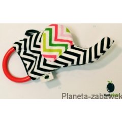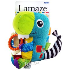 Torin the T-Rex - Lamaze - ZawieszkaDinozaur Torin - zawieszka Lamaze.Zabawki marki Lamaze są dobrze znane rodzicom. Markę Lamaze cechuje ciekawa bardzo barwna żywa kolorystyka, która przyciąga uwagę najbardziej wybrednych maluszków. Grzechotki, zawieszki przytulanki Lamaze wyróżnia stosowanie wielu rodzajów materiałów: gładkich, szorstkich, śliskich, miękkich jak i bardzo wysoka jakość wykonania poszczególnych zabawek co w efekcie daje bezpieczeństwo podczas zabawy, a także powoduje, że zabawka sprawa wiele radości na różnych etapach rozwoju maluszka.Zawieszka dinozaur Torin Lamaze posiada różnej tekstury elementy: szeleszczące rączki, nóżki i ogon, piszczący nosek, a na grzbiecie kolorowe wstążeczki, w jednej dłoni trzyma kość w drugiej kółeczka. Poszczególne elementy są w kolorach o wysokim kontraście. Dziecko może chwytać, potrząsać, gnieść zawieszkę. Zabawka posiada pętelkę z kółeczkiem, za które można ją doczepić do wózka lub fotelika.Wysokość zawieszki: 22 cmWymiary z opakowaniem: ok. 25 x 20 x 10 cmPoziom trudności: ŁatwyZawieszka Lamaze: rozwija zmysł wzroku, dotyku, słuchurozwija spostrzegawczośćwpływa na koordynację wzrokowo - ruchowąćwiczy koncentrację uwagirozwija zdolności manualne.Producent: TomyWiek: od urodzenia.Uwagi: Zmywalna wyłącznie zewnętrzna powierzchnia, nie zanurzać w wodzie, czyścić tylko ręcznie.