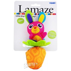 Little Grip Rattle Bunny - Lamaze - GrzechotkaGrzechotka Mały Króliczek Lamaze to wspaniała propozycja.Zabawki marki Lamaze są dobrze znane rodzicom. Markę Lamaze cechuje ciekawa bardzo barwna, żywa kolorystyka, która przyciąga uwagę najbardziej wybrednych maluszków. Grzechotki oraz zawieszki Lamaze wyróżnia stosowanie wielu rodzajów materiałów oraz bardzo wysoka jakość wykonania poszczególnych zabawek co w efekcie daje bezpieczeństwo podczas zabawy, a także powoduje, że zabawka sprawia wiele radości na różnych etapach rozwoju maluszka.Grzechotka Lamaze posiada różnej tekstury uszka, rączki oraz nóżki. Wyposażona jest w gryzak w kształcie liścia a poszczególne elementy są w kolorach o wysokim kontraście. Dziecko może potrząsać zabawką i wówczas usłyszy grzechoczący dźwięk. Zabawka posiada pętelkę, do której można doczepić kółeczko (brak w zestawie), wówczas może robić za zawieszkę.Wysokość grzechotki: 17 cmWymiary opakowania: 12,5 x 21 x 7 cmPoziom trudności: ŁatwyZabawka Lamaze: rozwija spostrzegawczośćwpływa na koordynację wzrokowo - ruchowąćwiczy koncentrację uwagirozwija zmysł dotyku.Producent: TomyWiek: od urodzenia.Uwagi: Zmywalna wyłącznie zewnętrzna powierzchnia, nie zanurzać w wodzie, czyścić tylko ręcznie.