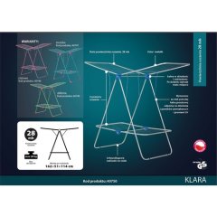 Suszarka do bielizny Klara metalikSuszarka do bielizny Klara wykonana z najwyższej jakości materiałów, bardzo trwała i funkcjonalna, wyposażona w antypoślizgowe zakładki na nogi, gustownie wykończona.Suszarka posiada dwa poziomy do wieszania prania, pręty o długości użytkowej 28 metrów. Suszarka wykonana z nierdzewnej stali, dodatkowe elementy podtrzymujące i nadające stabilność. Bardzo łatwa w rozkładaniu i składaniu.