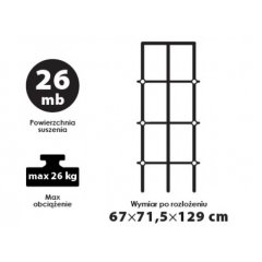 Suszarka na bieliznę Joanna metalikSuszarka posiada kilka poziomów do wieszania prania, linki o długości użytkowej 23 metrów, posiada także specjalne zawieszki do suszenia butów. Suszarka wykonana z nierdzewnej stali, dodatkowe elementy podtrzymujące i nadające stabilność. Suszarka wykonana z najwyższej jakości materiałów, bardzo trwała i funkcjonalna, wyposażona w antypoślizgowe zakładki na nogi, gustownie wykończona. Bardzo łatwa w rozkładaniu i składaniu.