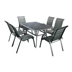 HECHT EKONOMY SET 6 MEBLE OGRODOWE ZESTAW MEBLI OGRODOWYCH ST...Zestaw sześciu (możliwość sztaplowania) stół z profili aluminiowych, blat stołu z hartowanego szkła. Nadaje się do stosowania na zewnątrz jak i wewnątrz.