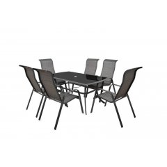 HECHT HONEY SET MAXI MEBLE OGRODOWE ZESTAW MEBLI OGRODOWYCH ST...Zestaw sześciu (możliwość sztaplowania) stół z profili aluminiowych, blat stołu z hartowanego czarnego szkła. Nadaje się do stosowania na zewnątrz jak i wewnątrz.